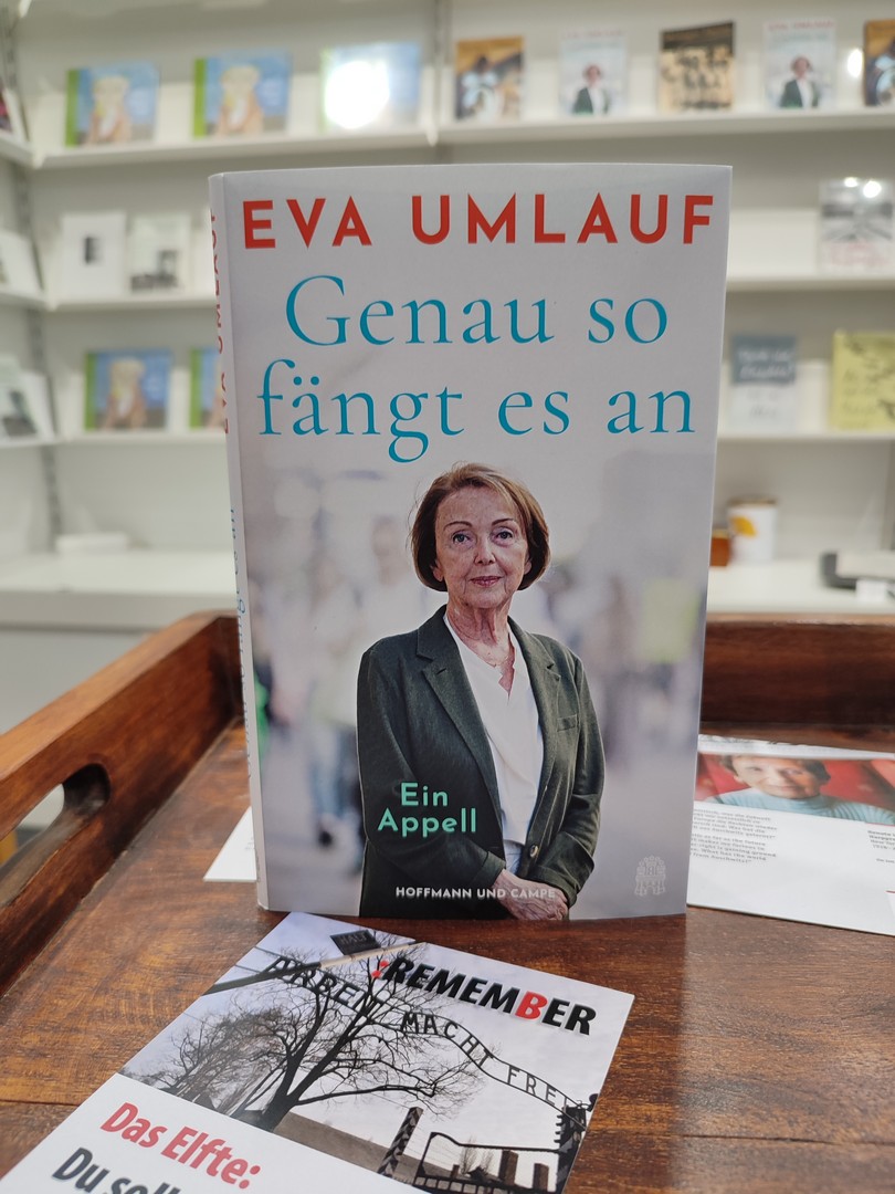 Ocalała z Auschwitz i prezydent Międzynarodowego Komitetu Oświęcimskiego dr Eva Umlauf zaprezentowała na wspólnym stoisku oraz podczas dwóch wieczornych spotkań autorskich swoją nową książkę „Genau so fängt es an”, w której – z perspektywy Ocalałej oraz w kontekście własnych wspomnień i doświadczeń – komentuje współczesne wydarzenia polityczne.