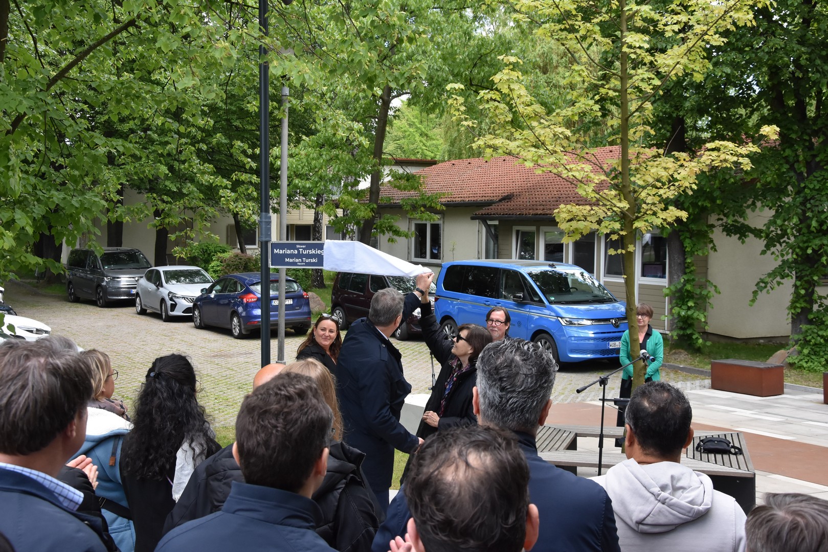 W obecności licznych gości z Polski i Niemiec tablicę z nazwą skweru odsłoniła córka Mariana Turskiego Joanna Turska oraz prezydent Oświęcimia Janusz Chwierut. Niestety uroczystość została przyćmiona przez niefortunny incydent, kiedy to zgromadzeni goście zostali obrzuceni antysemickimi obelgami z przejeżdżającego samochodu. Skwer Mariana Turskiego przed pawilonem wystawowym Gerharda Richtera w Oświęcimiu jest pierwszym miejscem upamiętniającym Mariana Turskiego w jego ojczyźnie i na świecie.
