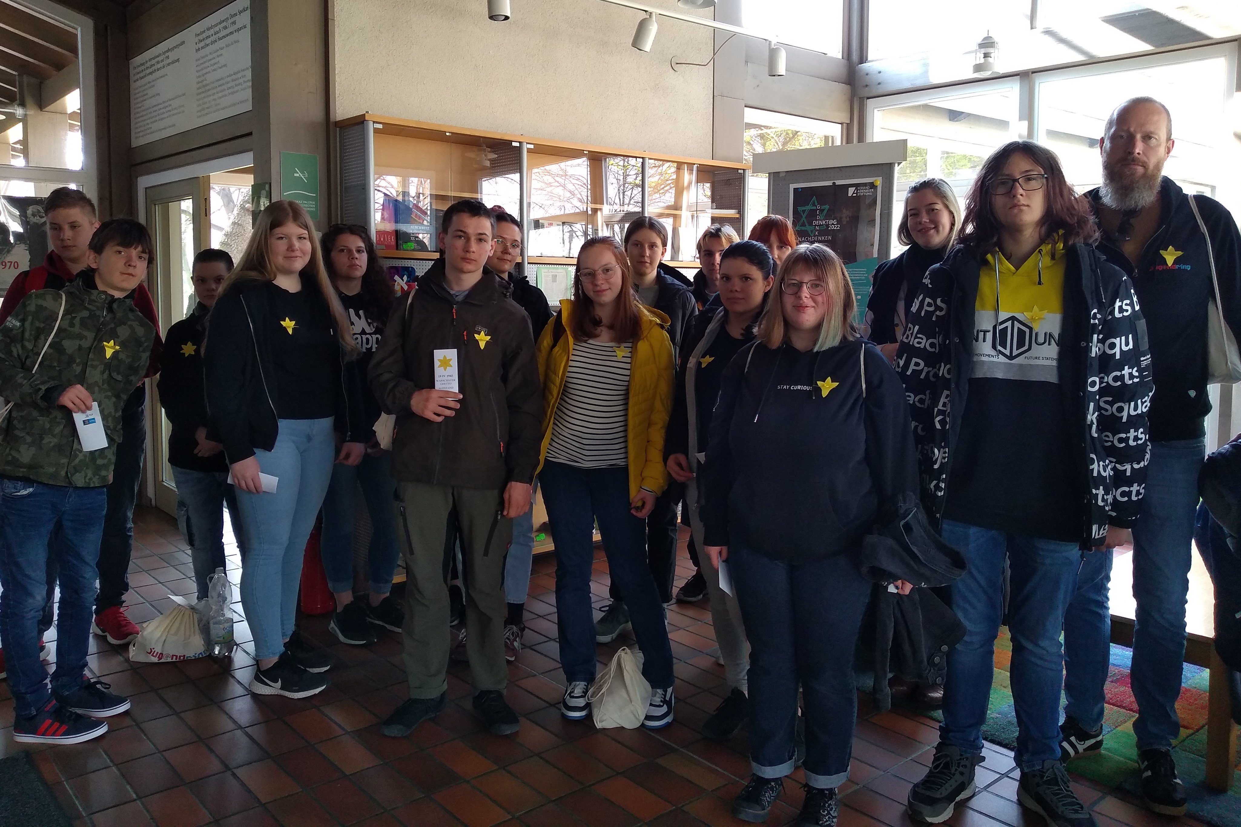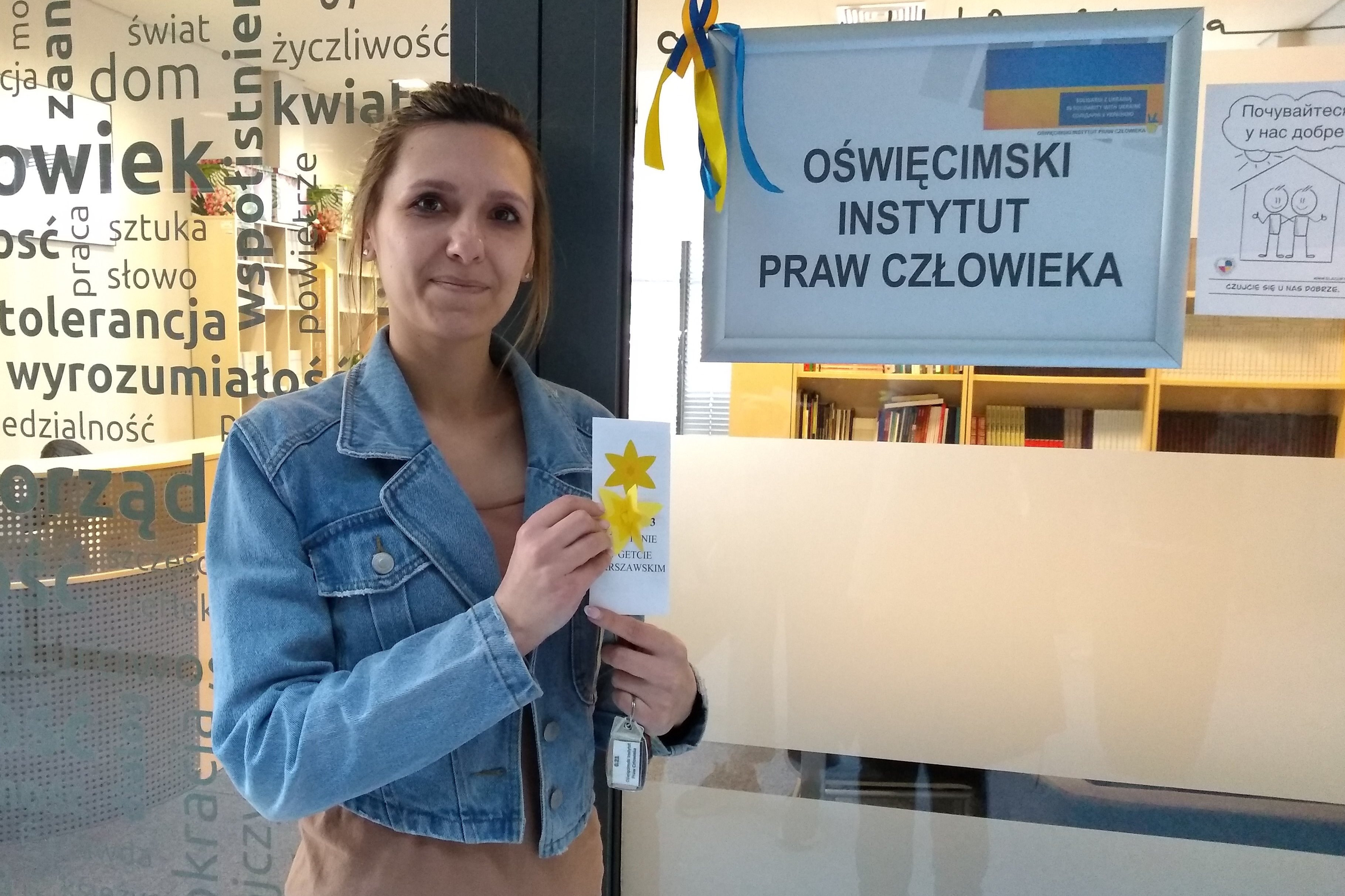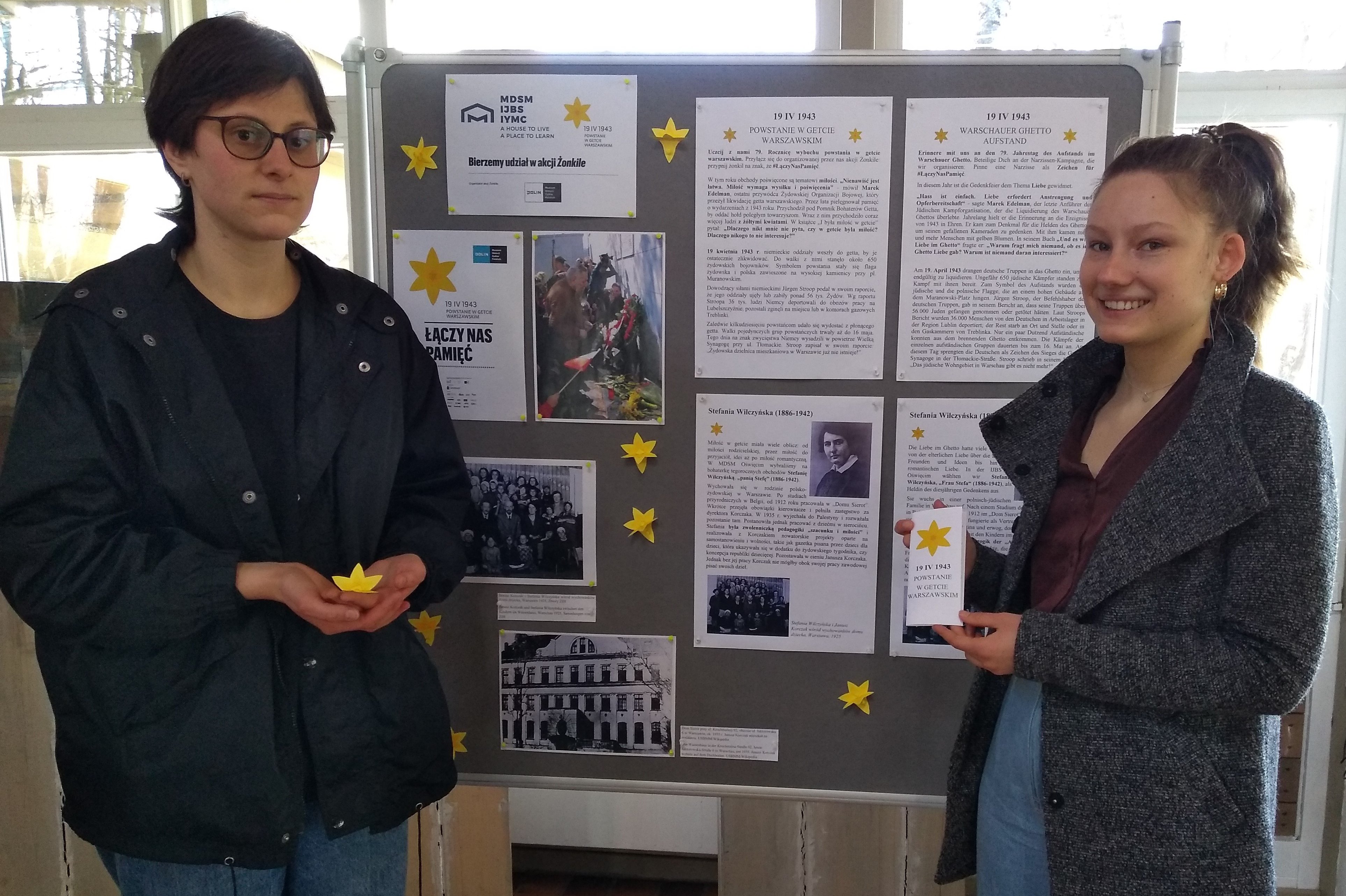 Zum 79. Jahrestag des Aufstands im Warschauer Ghetto verteilt die IJBS Oświęcim/Auschwitz gelbe Narzissen als Symbol der Erinnerung an die Heldinnen und Helden des Aufstandes. Diejenigen, die sie tragen, verbindet die Erinnerung an diese.