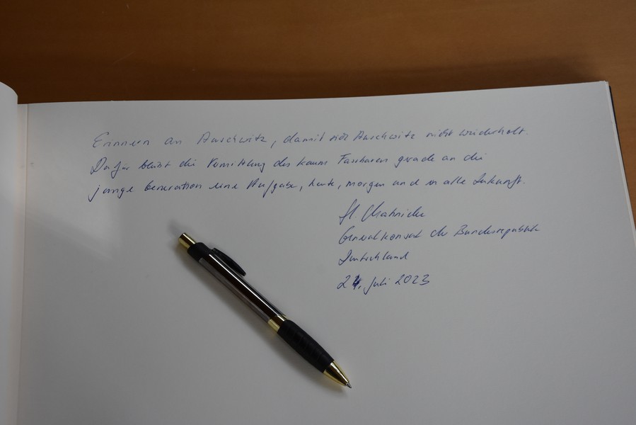 Am 24. Juli war der neue Generalkonsul der Bundesrepublik Deutschland in Krakau, Herr Holger Mahnicke, mit seiner Gattin zu seinem Antrittsbesuch in Oświęcim und hat neben dem Staatlichen Museum Auschwitz-Birkenau auch die Internationale Jugendbegegnungsstätte besucht. Bei einem gemeinsamen Mittagessen mit unsere Direktorin, Joanna Klęczar-Déodat, konnte der Generalkonsul sich mit den vielfältigen Aspekten der Arbeit unseres Hauses vertraut machen und unser Haus kennenlernen. Wir hoffen dass sich Herr Generalkonsul schnell einlebt und freuen uns die enge und vertrauliche Arbeit mit dem Generalkonsulat fortzuführen.
