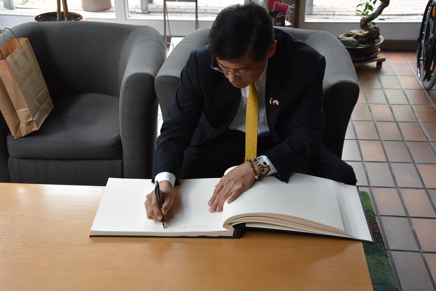 Today, the International Youth Meeting Centre in Oświęcim hosted Mr. Akio Miyajima, Ambassador of Japan in Warsaw, and Ms. Michiko Makino, Director of the Information and Culture Department of the Embassy of Japan in Warsaw. The delegation was accompanied by Mr. Janusz Chwierut, president of the city of Oświęcim, Mr. Andrzej Kacorzyk, director of the International Centre for Education about Auschwitz and the Holocaust, Ms. Helena Wisła, chairman of the board of the Foundation - Memorial Hospice of the City of Oświęcim and Mr. Marek Tarnowski, head of the City Promotion Department. The guests were welcomed by Joanna Klęczar-Déodat , director of the IYMC.