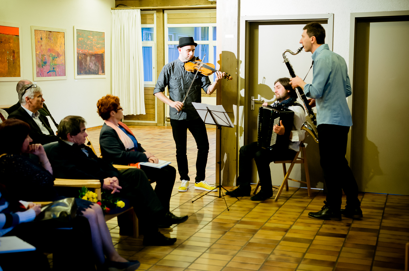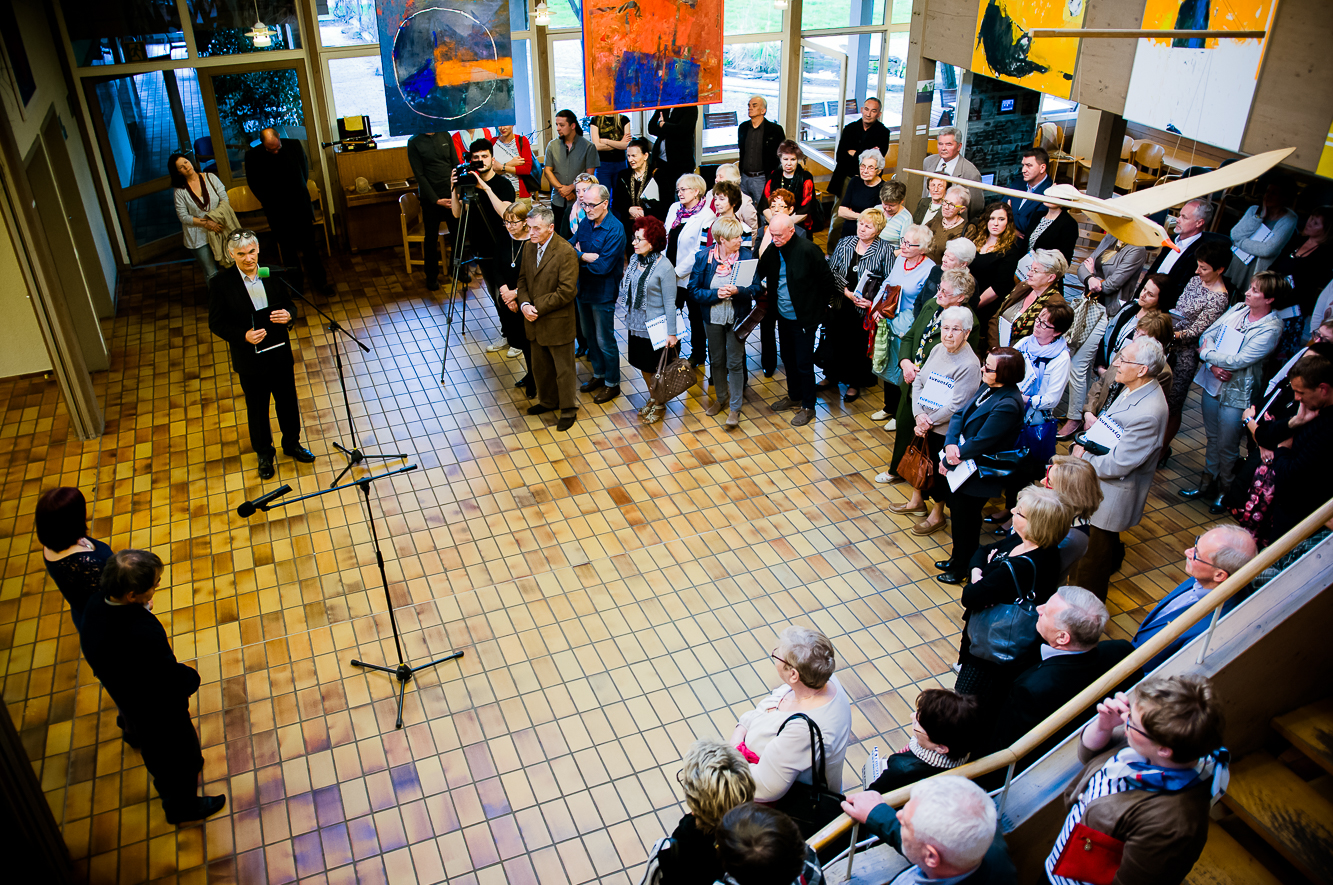 Otwarcia wystawy i powitania gości dokonał dyrektor Międzynarodowego Domu Spotkań Młodzieży Leszek Szuster. W czasie wernisażu przemawiali Elżbieta Kuraj i Janusz Karbowniczek przedstawiając wzajemnie swój warsztat i twórczość artystyczną. Zdarzenie dopełnił koncert zespołu m.o.l.o. w składzie Jacek Hołubowski (akordeon) , Mateusz Pliniewicz (skrzypce) i Piotr Skupniewicz (klarnet). Muzycy dokonali nietuzinkowego muzycznego oprowadzania po wystawie, spacerując po sali i odnosząc się wirtuozersko do poszczególnych obrazów. Zamknięcia części oficjalnej wernisażu podjął się Dyrektor Fundacji Judaica i Przewodniczący Rady Fundacji na Rzecz MDSM Joachim S. Russek, który poinformował, że od 19.05.2016 wystawę będzie można oglądać w CKŻ na Krakowskim Kazimierzu.